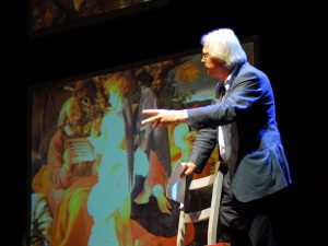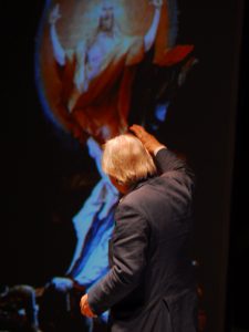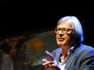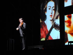 GUBBIO (PG) – Che Vittorio Sgarbi sia un esteta, amante della bellezza, ce lo dimostra ogni volta, con le sue acute osservazioni, e una cultura che gli permette di spaziare dall’antico al moderno, senza inciampi, senza brutture. E io, ogni volta resto a bocca aperta. Come ieri, affacciata alla balaustra di Piazza grande, con Gubbio ai miei piedi, e una campagna estiva quasi addormentata; un Palazzo dei consoli che con la sua maestosità e potenza osservava curioso e rigido Vittorio, attento alle sue affermazioni. La domanda che avrei voluto fare ieri sera a Vittorio, era semplice. Ma Cosa siamo in grado di trasmettere ai giovani, in questa società dell’approssimazione, in questa era di internet che crea collegamenti mondiali e virtuali in un nanosecondo, e ci da risposte a qualsiasi domanda. Sembra quasi che non ci sia più bisogno di insegnanti. E invece c’è bisogno di ottimi maestri. Questa affermazione sembra banale e retorica. Sembra anche questa, una di quelle frasi che leggi nei social. Eppure porta con se una verità dalla quale ci stiamo allontanando: tanti insegnanti, pochi maestri. Spesso è una questione di valori. I maestri che attraverso il loro sapere, ti lasciano insegnamenti di vita, emozioni, ricordi, sono loro che riescono a svelarti un mondo nascosto dietro date, fatti e avvenimenti. Sono i maestri che riescono a crescere grandi persone. Non esistono segreti, ma grandi personalità, persone che riescono ancora ad affascinare. Basterebbe una ricerca intima e personale, e tutto il sapere e la conoscenza affiorerebbero come un miracolo dal profondo della coscienza. Ecco allora Vittorio Sgarbi ha affascinato un pubblico che ha riempito una Piazza Grande intera, un pubblico che non è stato fermato nemmeno dalla pioggia: l’incanto delle cose semplici e belle, della vita che nonostante tutto, ha il suo corso inarrestabile. Vittorio Sgarbi, che parli ad una sola persona, o ad un pubblico intero, non ha mezze misure. Non c’è bisogno di snocciolare date; ma collegare eventi, emozioni e sogni, in un momento, dal ‘500 al ‘900, questa è arte. Un’arte del bello. E allora, ecco il Caravaggio svelato. Svelato perché raccontato dall’osservazione acuta di Sgarbi, che riesce a farti vedere particolari sfuggenti, e collegamenti con la modernità nostra, attuale, quasi sconcertanti. Quello che la storia di ieri ci ha insegnato, sembra proprio essere il fatto che gli eroi non esistono, che spesso avviene un capovolgimento eroico, in cui l’eroe positivo nel momento ultimo del suo riscatto morale, prende coscienza dell’inutilità della morte e l’eroe negativo viene elevato alla compassione umana, che anticipa quella Divina. Come se a nulla serve l’affannarsi nella vita tra odio e dolore. Come se le passioni umane che fanno grande la vita e gli uomini, anche nel momento estremo insegnano ed elevano lo spirito. Come se non servisse più Dio e il suo giudizio universale a salvare la moralità. Come se l’umanità, non fosse in grado di salvarsi ed essere salvata. Sembra proprio che non ci sia grazia. Un’umanità che ha affascinato e stupito l’artista, che ha saputo leggere e ridarci intatta, senza veli, senza allusioni, ma come semplice schietta ed immediata. Attraverso la verità della società del suo tempo, Caravaggio ha sovvertito il posto dei Santi; ha ridato l’umanità alla vergine Maria, vista come mamma, come persona; è stato in grado di comprendere le parole di Cristo quale figlio dell’uomo. Cristo diviene figlio dell’umanità, e si avvicina agli uomini sempre in bilico tra passioni e moralità; in bilico fra l’oggi e lo scorrere del tempo che avvizzisce la vita e la giovinezza; in bilico tra l’essere e l’inquietudine, in bilico, come la coscienza consapevole della corsa inarrestabile verso la decadenza e la morte, nonostante l’apparenza della bellezza, della giovinezza, della sensualità; un vero pieno di vuoti, una luce piena di ombre. E le passioni umane, attraversano i secoli senza morire, attraversano gli uomini, e vengono vissute e percepite come fossero sempre nuove.