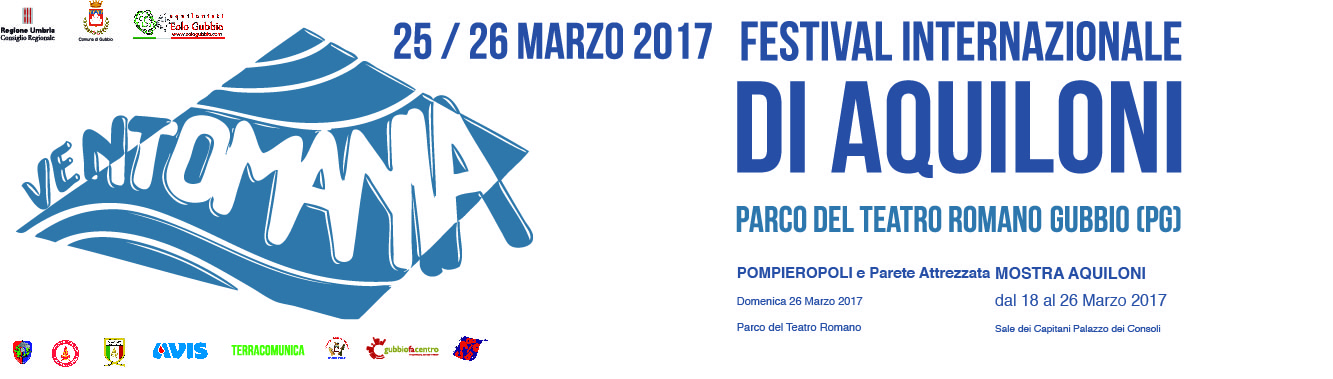 Ventomania 2017GUBBIO (PG) – Anche quest’anno l’immancabile appuntamento con Ventomania, il Festival Internazionale di aquiloni, che si terrà il 25 e 26 marzo presso il Parco del Teatro Romano a Gubbio, dalle ore 10:00 alle ore 18:00.
