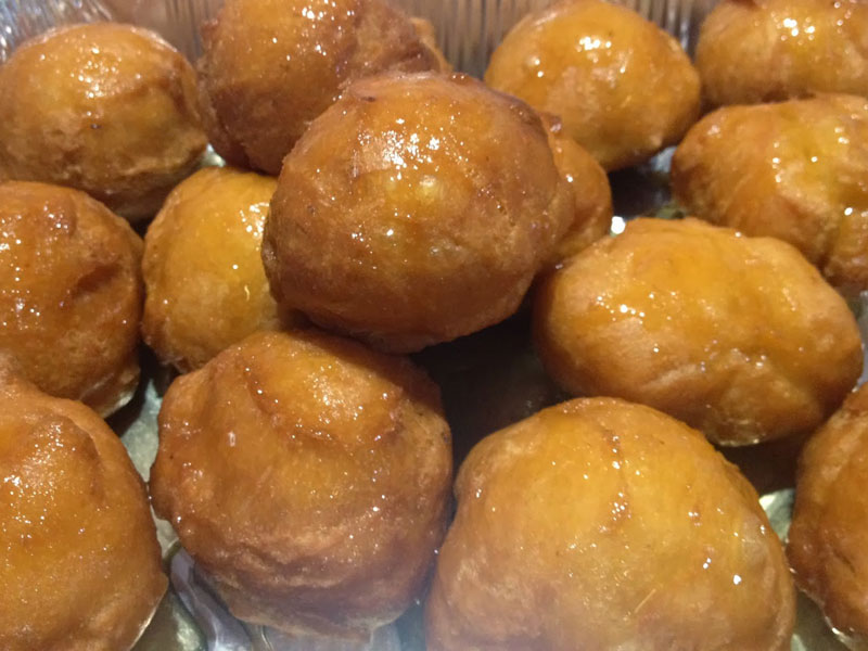 Unire tra loro la farina, il lievito, l’olio di semi, la buccia di limone, lo zucchero, gli aromi ed i liquori. Impastare con energia il tutto per diversi minuti, per formare un composto consistente e alveolato. Aggiungere se serve un po’ di farina o all’occorrenza del latte. Lasciare riposare l’impasto per circa un’ora. Scaldare su una larga padella l’olio di semi. Prendere una cucchiaiata dell’impasto ed immergerlo nell’olio bollente. Quando risultano gonfi e dorati estrarli dall’olio e adagiarli su di una carta assorbente. Irrorare gli strufoli di Alchermes e versarvi il miele sciolto a bagnomaria.
