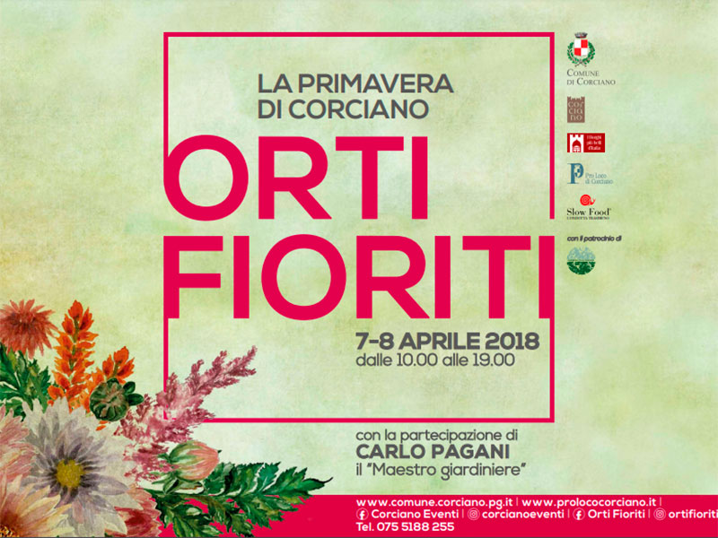 Orti Fioriti è organizzata dal Comune di Corciano in collaborazione con la Proloco di Corciano, Slow Food Condotta Trasimeno, con il patrocinio di Garden Club Perugia.