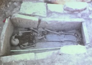 L’epigrafe è stata scoperta nell’ambito dell’area cimiteriale medievale del sito: una prima parte era stata usata come segnacolo tombale, mentre le altre lastre erano state utilizzate come spalletta di una tomba. La scritta nel suo insieme riporta notizie molto importanti: il nome “Octavius” che appartiene a colui che avrebbe costruito o restaurato il teatro; la carica magistrale di questo illustre personaggio, un “Quattruoviro”, e la qualifica di “Pontifex”, in qualità di pontefice della città e la scritta “sua pecunia”, cioè a sue spese. A questa epigrafe mancava solo un piccolo tassello, una lastra già fortunatamente rinvenuta nelle precedenti campagne di scavo, che è andata a comporre e completare la parola “Theatrum”. L’epigrafe nel suo complesso testimonia dunque la presenza di un teatro nella città romana di Urvinum Hortense, che potrebbe venire alla luce nelle future campagne di scavo.