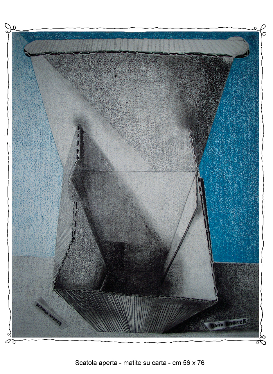 David Booker è nato in Australia nel 1954. Lì, ha scolpito nel legno della Tasmania la sua prima scultura, il Totem. Si è poi trasferito in Inghilterra dove ha lavorato in una fabbrica di sidro prima di arrivare in Italia per trovare un blocco di marmo e scolpire la sua prima scultura in marmo. Dal 2008 ha iniziato ad esporre le sue opere su carta in cui scatole, cartoni, pezzi meccanici e materiali di scarto divengono oggetto di contemplazione in nature morte indagate nella loro consistenza fisica, resa attraverso un dialogo tra luci e ombre che richiama le sue opere scultoree. David Booker vive e lavora in Umbria.