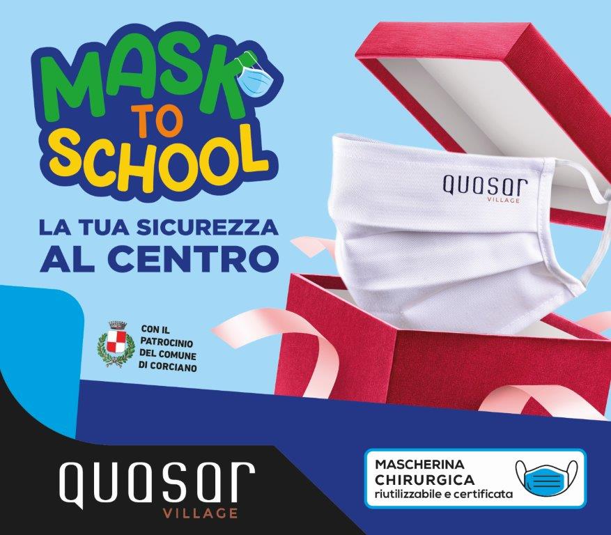 CORCIANO (PG) – Il Centro Commerciale Quasar Village ha lanciato in questi giorni l’iniziativa “Mask to school” con l’obiettivo di portarsi in contatto con le famiglie del territorio attraverso un gesto di attenzione alla sicurezza e salute dei loro figli.