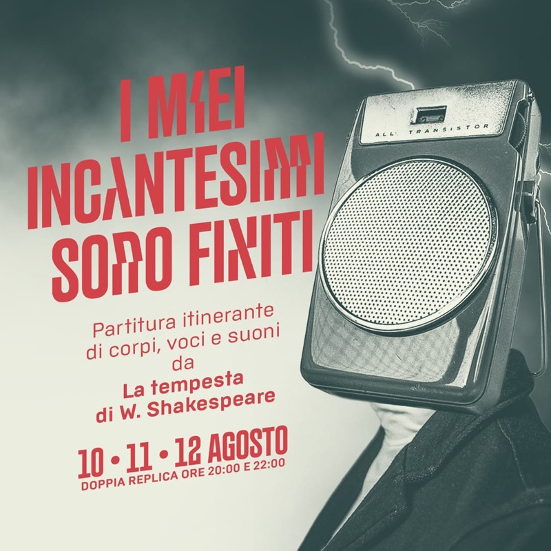 CORCIANO (PG) – Quarta giornata del Festival di Corciano che prosegue la sua 57° edizione all’insegna della contaminazione e della sperimentazione artistica. Martedì 10 agosto va in scena la prima assoluta dello spettacolo itinerante “I miei incantesimi sono finiti”, un’originale rivisitazione de “La Tempesta” di William Shakespeare creata appositamente per il Festival, ad opera del regista e attore umbro Samuele Chiovoloni, prodotto da Argo Teatro in collaborazione con il Piccolo Teatro degli Instabili di Assisi. Lo spettacolo prenderà forma nelle vie e nelle piazze del borgo, valorizzandone le peculiarità e le atmosfere naturali, e seguirà una partitura sonora di dialoghi e musica che sarà ascoltata dal pubblico attraverso delle cuffie professionali. Il suono accompagnerà l’intera performance per un percorso solitario e immersivo e gli spettatori saranno trascinati in un labirinto di suono e visione dove ‘magico’ e ‘fantastico’ saranno compagni di viaggio in ogni scena e ambientazione. (In scena il 10, l’11 e il 12 agosto, ogni sera con 2 repliche, la prima alle 20, la seconda alle 22. Spettacolo a pagamento, è necessaria la prenotazione).