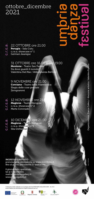 Con C.R.E.A. Showcase n°1, venerdì 22 ottobre alla Sala Cutu di Perugia, prende il via Umbria Danza Festival, la rassegna di spettacoli multidisciplinari ideata da Dance Gallery con l’obiettivo di avvicinare il pubblico della regione ai diversi linguaggi della danza.