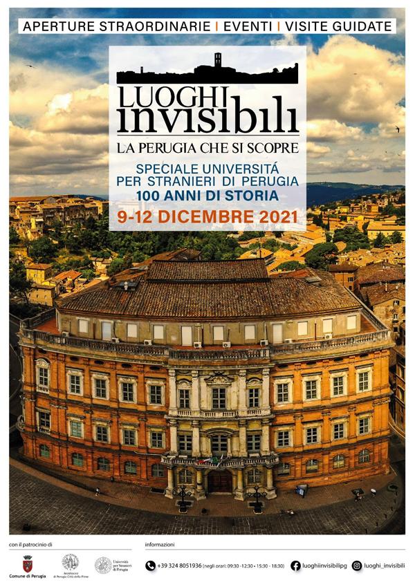 PERUGIA – “Luoghi Invisibili. La Perugia che si scopre” chiude il 2021 con una seconda edizione dedicata alla città universitaria e in particolare all’Università per Stranieri di Perugia, a 100 anni dalla sua fondazione. Dal 9 al 12 dicembre prossimi, infatti, sono in programma aperture straordinarie e visite guidate che ci consentiranno di scoprire non soltanto il patrimonio artistico e storico-architettonico dell’imponente sede universitaria di Palazzo Gallenga Stuart, ma anche il quartiere multiculturale che la ospita, insieme alla sua cosmopolita comunità studentesca. Agli universitari stranieri e italiani sono infatti dedicati aperitivi e serate musicali in locali di riferimento del centro storico, cui si aggiungono un concerto jazz di brani natalizi, una cena di beneficenza a favore della Comunità di S. Egidio di Perugia, incontri sportivi e passeggiate alla scoperta della città universitaria.