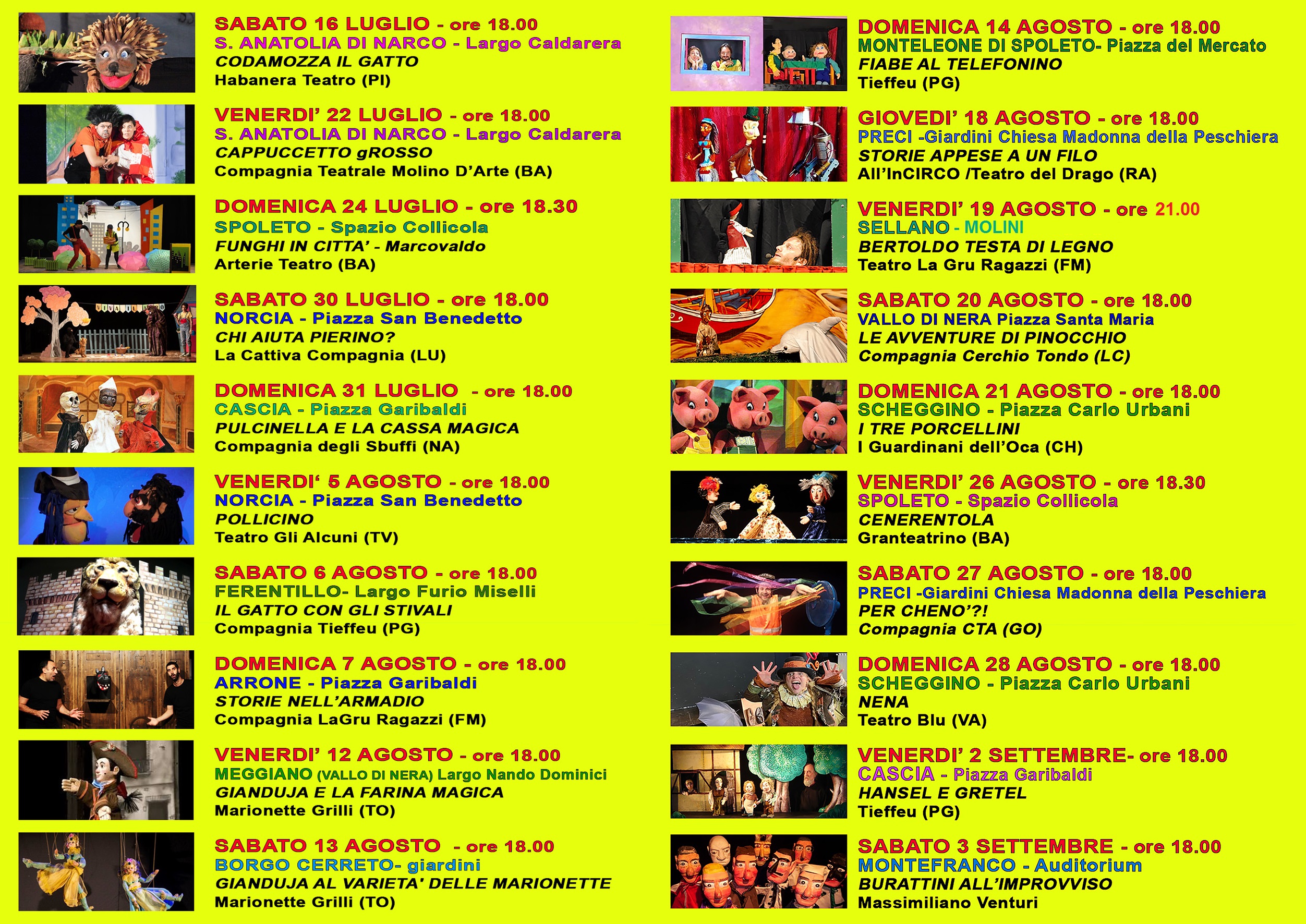 Il secondo appuntamento si svolgerà ancora a Santa Anatolia di Narco, il 22 luglio con lo spettacolo “CAPPUCCETTO gROSSO”. Il 24 luglio il festival toccherà anche Spoleto, con lo spettacolo “FUNGHI IN CITTA’” presso lo spazio Collicola.