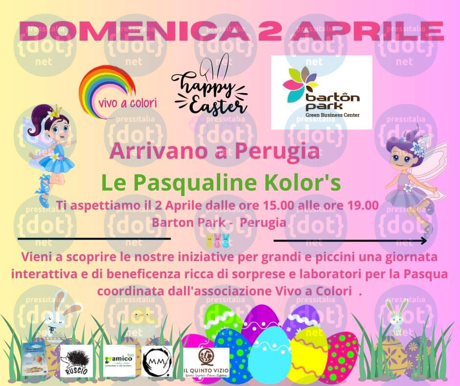 PERUGIA – Per la prima volta le Pasqualine Kolor’s saranno nell’area dell’arena del Barton Park di Perugia per dare vita ad un evento dedicato ai bambini e alle loro famiglie (ad ingresso libero). Domenica 2 aprile, dalle ore 15,30 alle 18,30, le fatine animeranno un pomeriggio di beneficenza dedicato alla raccolta fondi di Vivo a Colori, finalizzata all’acquisto del presidio elettromedicale da donare alla Breast Unit dell’ospedale Santa Maria della Misericordia di Perugia, una modernissima apparecchiatura per il tatuaggio medicale.