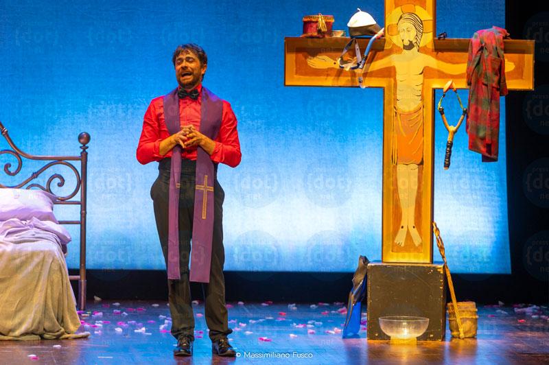 Si comincia con l’attore, autore e regista Giovanni Scifoni in scena, mercoledì 19 luglio alle 21.30 alla Rocca Flea, con il suo spettacolo Santo Piacere. Dio è contento quando godo, diretto da Vincenzo Incenzo. Non c’è sesso senza amore è solo il riff di una canzone o una verità assoluta? Come la mettiamo con il VI Comandamento? Tutti dobbiamo fare i conti con la nostra carne e troppo spesso i conti non tornano. Anima e corpo sono in guerra da sempre, alla ricerca di una agognata indipendenza. Come in tutte le guerre, nel tempo mutano le strategie e i rapporti di forza. Ma noi, credenti, bigotti o atei incalliti, continuiamo ad inciampare nelle nostre mutande, tra dubbi e desideri. Scifoni ha un piano: porre fine all’eterno conflitto tra Fede e Godimento e fare luce su una verità definitiva e catartica, dove l’anima possa ruzzolarsi sovrana nel sesso e il corpo finalmente abbracciare l’amore più puro, in grazia di Dio. Sequestra così per un’ora il mezzo il pubblico e lo pone al centro di un esperimento unico e irresistibile, avventurandosi tra vizi, ragioni e sentimenti della fauna umana, oscillando come un esilarante pendolo tra gli estremi del sesso e della Fede, in metamorfosi continua tra i suoi personaggi, il morigerato Don Mauro schiavo di un catechismo improbabile, e l’illuminato Rashid, pizzettaio musulmano modernista. In un flusso di coscienza tempestoso e irresistibile, alto e comico al contempo, Scifoni fa rimbalzare Papi e martiri, santi e filosofi, scimmioni primitivi e cardinali futuribili, anni ’80 e Medioevo, dribblando continuamente la tentazione di un meraviglioso e furastico corpo femminile che incombe sulla scena a intervalli regolari per saggiare l’effettiva disintossicazione da sesso del pubblico; liberandosi di pregiudizi, luoghi comuni e vestiti, Scifoni ci trascina seminudo a riva con l’ultimo sorprendente quadro, che sembra mettere finalmente d’accordo Piacere e Santità: un ballo lento degli affetti e dei ricordi che ci farà uscire, dopo tante risate, con le lacrime della commozione.