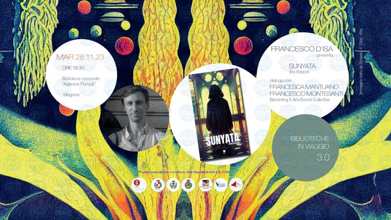 Martedì 28 novembre, alle 18.30, appuntamento a Magione, presso la biblioteca comunale “Vittoria Aganoor Pompilj”, con Francesco D’Isa, che incontrerà il pubblico per presentare il suo ultimo lavoro dal titolo Sunyata (Eris edizioni). Un’opera che porta i lettori in una dimensione onirica in cui identità, simboli culturali e sensazioni si mescolano in quello che sembra un viaggio alla ricerca di sé e allo stesso tempo una discesa nel concetto Io. I testi scritti dall’autore accompagnano la parte grafica realizzata con l’utilizzo dell’intelligenza artificiale.
