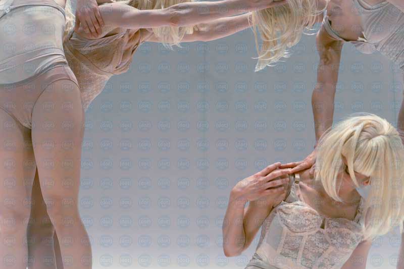 “Con un travestimento posticcio e movenze minimali il flusso ci porta nel gioco dell’identità femminile, effeminando, maschizzando, disimbambolando le quattro interpreti. Scorporazione e incorporazione di se stesse e l’altra: due poli, due luoghi fisici sulle rive opposte dello stesso fiume. Complici del loro stesso apparire si specchiano l’una nell’altra restituendo movenze specchiate, compresse e rivestite da un accompagnamento sonoro che magnetizza e fluisce senza alcuna reale interruzione né spazio per la melodia ma solo per l’aridità del ritmo. Femina è lo spazio di traduzione e allucinazione in quadro scenico di possibili forme e nomi del donnesco e femmineo mondo contemporaneo”. M.A.