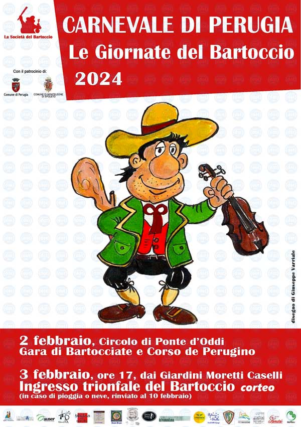 Per cominciare, i poeti perugini sono pronti alla sfida a colpi di sferzanti bartocciate, che si terrà venerdì 2 febbraio dalle ore 18,00 al Circolo di Ponte d’Oddi con la annuale Gara di Bartocciate, condotta come sempre magistralmente da Graziano Vinti nei panni del Bartoccio. Gli autori e le autrici leggeranno le loro bartocciate, dopodiché il pubblico esprimerà le proprie preferenze.