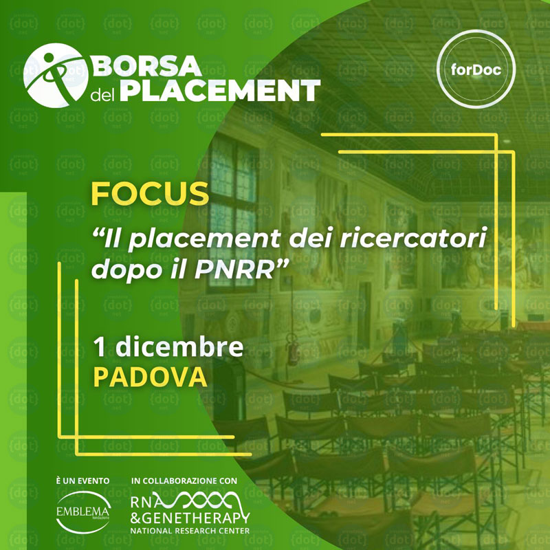Il Focus di Padova, evento nazionale di incontro e confronto dedicato a università, aziende, ricercatori e dottori di ricerca, su temi legati al “placement” di profili iper-specializzati, si configura come uno degli appuntamenti della Borsa del Placement, iniziativa promossa dalla Fondazione Emblema per avvicinare il mondo accademico e quello del lavoro attraverso lo sviluppo di relazioni dirette tra enti di alta formazione e imprese.