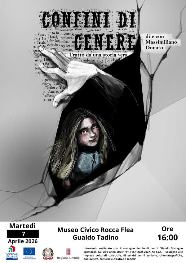 GUALDO TADINO (PG) – Martedì 7 aprile, alle ore 16.00, con ingresso libero, presso il Museo Civico Rocca Flea a Gualdo Tadino sarà messo in scena “Confini di cenere”, uno spettacolo che affronta senza filtri uno dei temi più laceranti e controversi della contemporaneità: la violenza sui minori e il dilemma morale tra giustizia e vendetta.